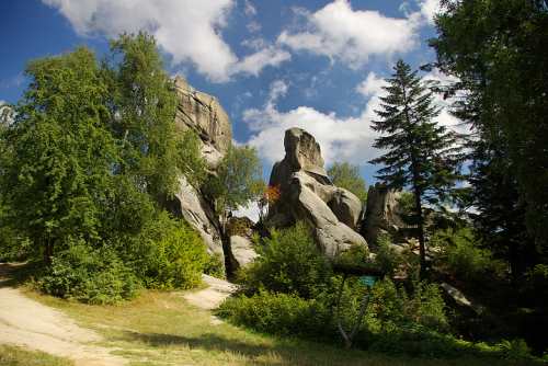 Природный скальный заповедник «Przadki» (Прядильщицы) находится между местностями Чарножекой и Корчинэм. Это самый посещаемый объект в Дыновском Подгорье. Очень интересно происхождение этих живописных 20-метровых скал. На протяжении нескольких километров из-под земли выступают более чем 23 слоя различных геологических формаций, которые находят друг на друга в трех отрезках – Скольском, Шльонском и Подлясском. Сам заповедник стоит на плите из песчаника, толщина которой достигает 70 метров. Каждая отдельная группа скальных формирований напоминает человеческие силуэты, что привело к возникновению множества легенд. Согласно одной из них, три девицы с ближайшей деревушки влюбились в одного рыцаря. Договорившись между собой, они решили устроить между собой состязание – которая скорее напрядет нитей на подвенечный наряд, та и будет невестой рыцаря. Дело было в канун праздника и, не желая прерывать работу, они взобрались на лесистое взгорье, где могли прясть, не вызывая осуждения со стороны своих родственников. Но ни одна из них не сумела закончить пряжу до того, как прозвенел колокол на костеле, призывающий жителей деревни на праздничную литургию. Тогда три прядильщицы обратились в каменные столбы, как предупреждение для тех, кто работает в святой день.